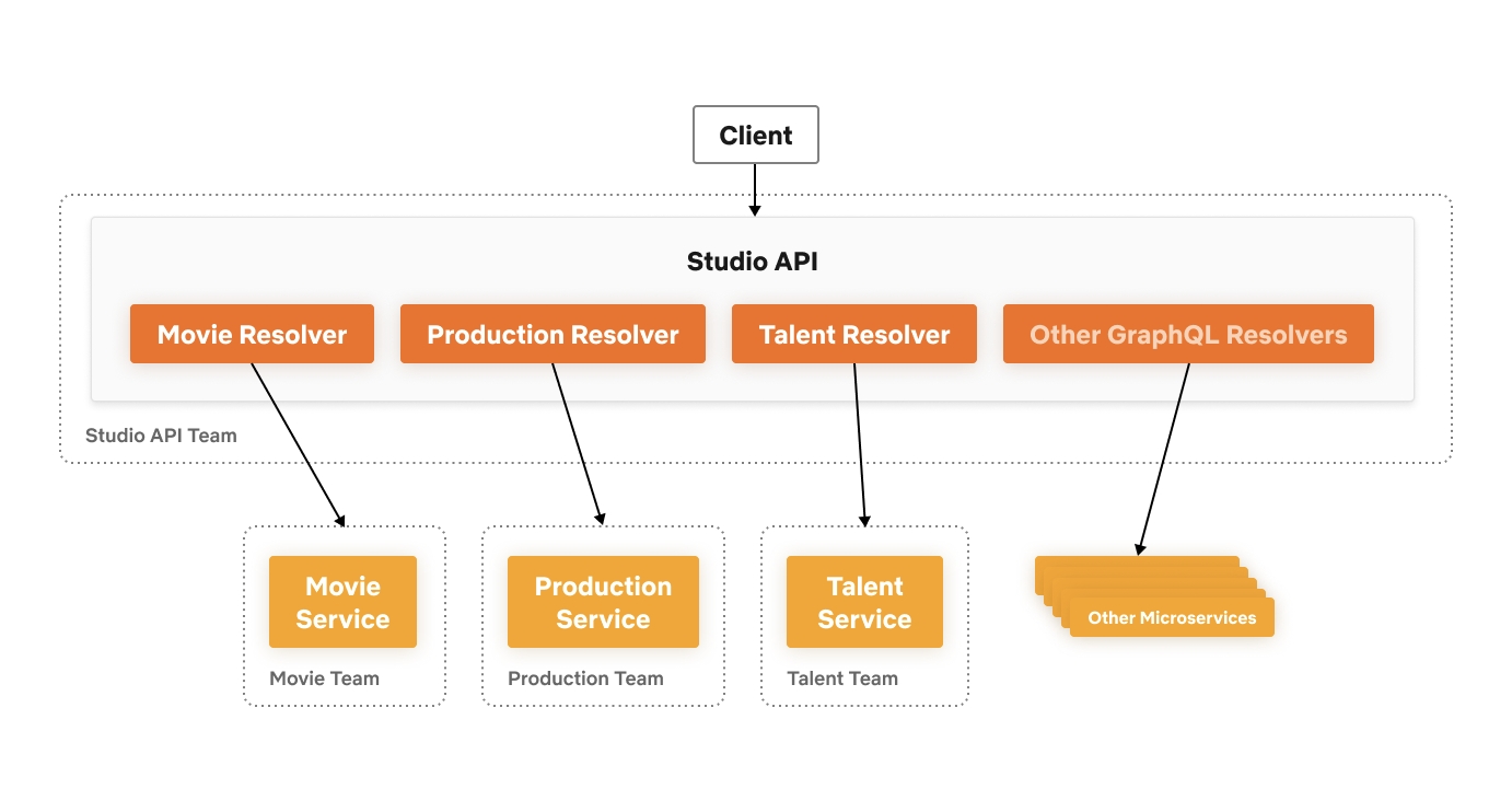 To address these bottlenecks, we leaned into our rich history of microservices and breaking monoliths apart. We still wanted to keep the unified GraphQL schema of Studio API but decentralize the implementation of the resolvers to their respective domain teams.